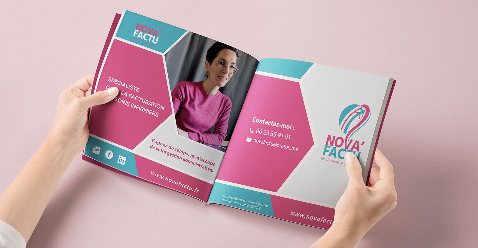 Nous avons accompagné Harmonie dans la création complète de l’identité visuelle de Nova’Factu, son activité de facturation dédiée aux infirmières libérales et aux distributeurs de matériel médical.